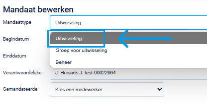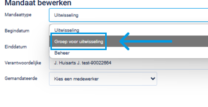 Selecteer bij mandaattype Groep voor uitwisseling |