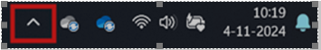 - Klik rechtsonder naast de systeemtijd op het pijltje om verborgen icoontjes weer te geven