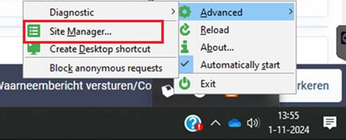 - Klik op Advanced en daarna Site manager
