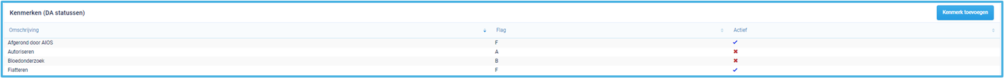 In Instantiebeheer kon je bij een specifieke DA-status instellen dat deze bedoeld was om 'te fiatteren'. Deze instelling was dan zichtbaar als een kolom in de tabel 'DA-statussen'.