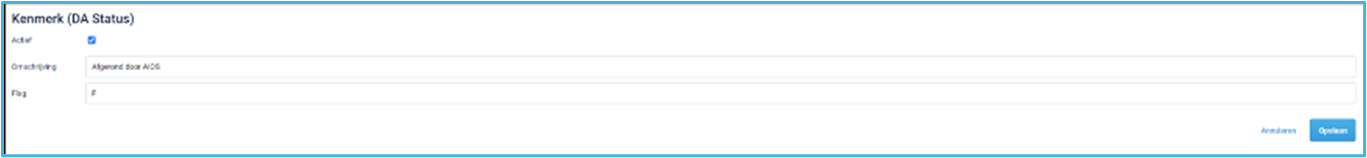 De optie "fiatteren" wordt sinds versie 2024.4 niet meer gebruikt bij kenmerken (DA status) daarom is deze optie verwijderd. |