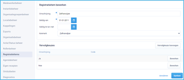 - klik achter het registratieitem binnenloper (of Zelfverwijzer) op bewerken
