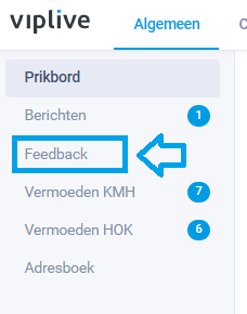 Klik hiervoor aan de rechterkant binnen het huidige contact scherm op de optie Feedback.