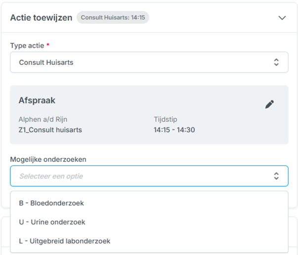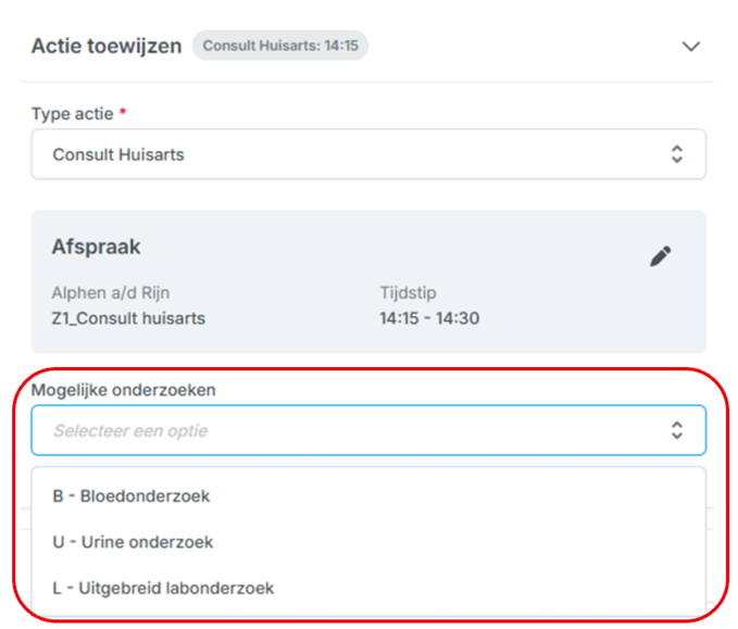 Figuur 1 - voorbeeld van een keuzelijst bij de actie 'Consult'