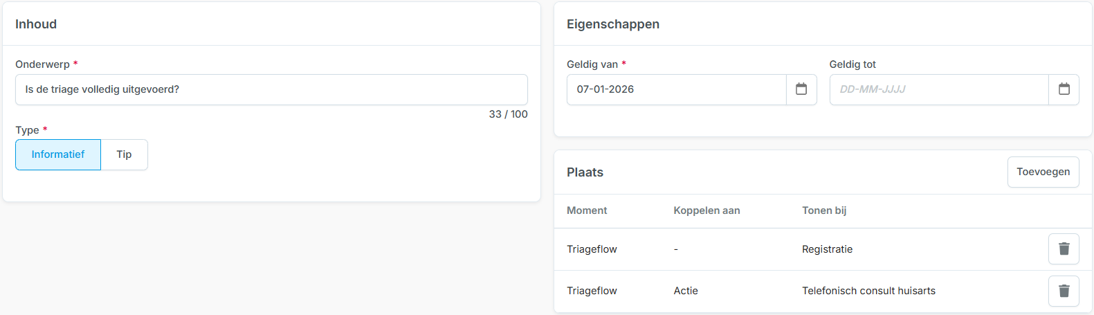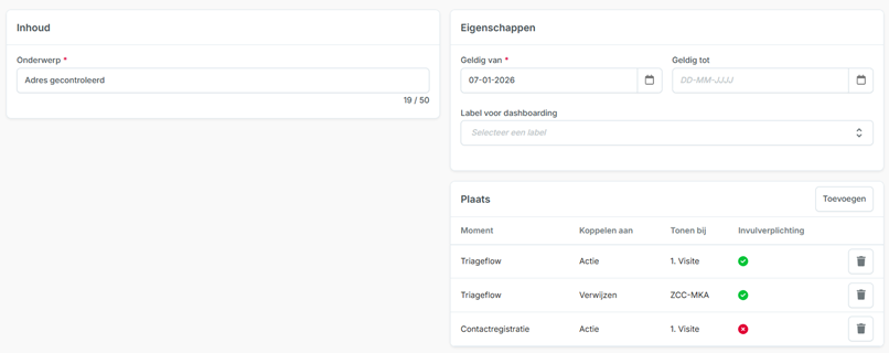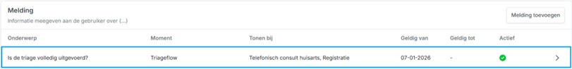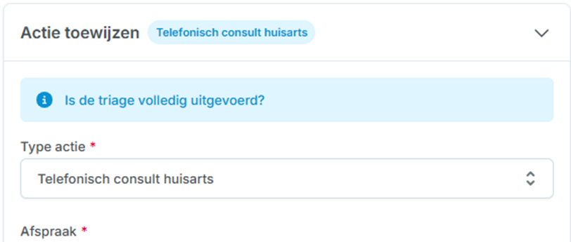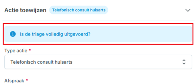 Het eindresultaat in card Registratie (Afronden triageflow):