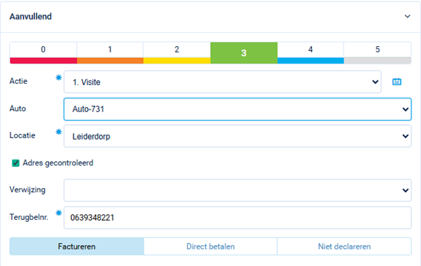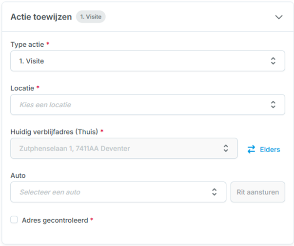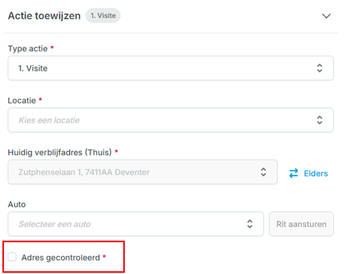 Figuur 3 - voorbeeld van een checkbox bij de actie 'Visite'