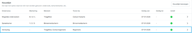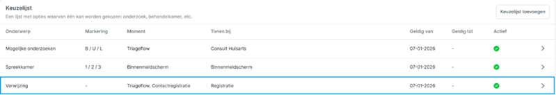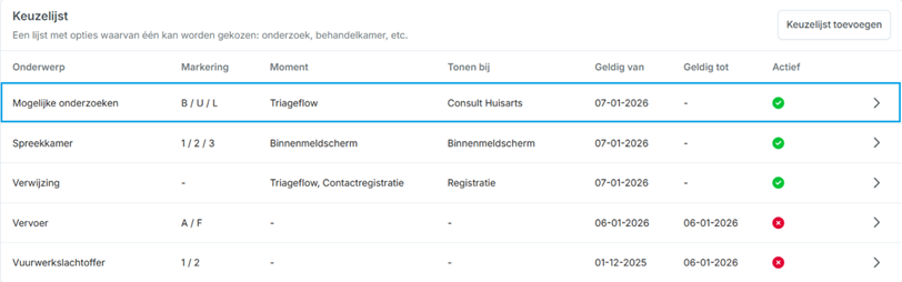 - Maximaal 3 actieve keuzelijsten met een markering op de werklijst.