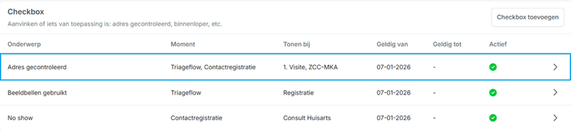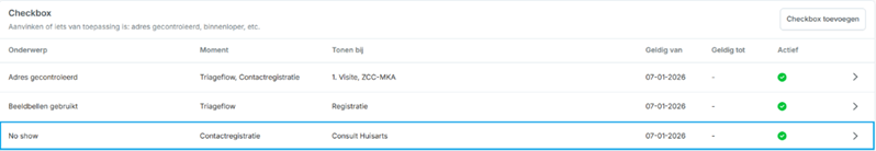 Figuur 6 - detailscherm Checkbox toevoegen