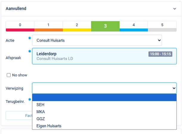 - Een Aanvullende registratie die verplicht moet zijn voor de huisarts, wordt gekoppeld aan het Contactregistratie proces.