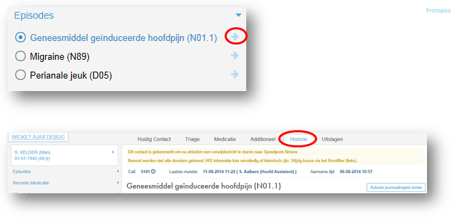- Als de episode meerdere keren voor komt bij de patiënt dan wordt de laatst gebruikte bovenaan getoond (contactdatum staat tussen haakjes).
