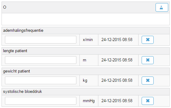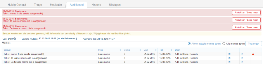 Tabbladen Triage, Medicatie, Additioneel, Historie & Uitslagen