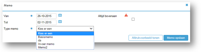 Evt. een registratie item als deze als 'verplicht bij [Opslaan]' is ingesteld.