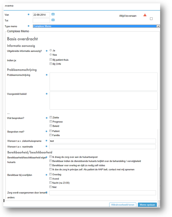Standaard wordt er vanuit gegaan dat het HAP contact naar de eigen huisarts wordt gerapporteerd of als het bericht niet kan worden afgeleverd (via het LSP) het contact opvraagbaar. Als de patiënt dit niet wilt dan wordt de vink in de check box verwijderd.