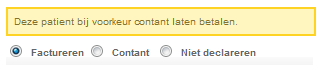 - Er wordt een geel signaal getoond dat patiënt bij voorkeur contant dient af te rekenen.