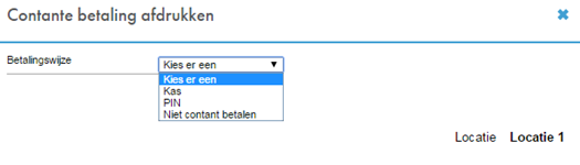 Maak een keuze in het drop down menu 'Betalingswijze'. Bij de keuze 'Kas of Pin' komt de optie [Factuur afdrukken] beschikbaar.
